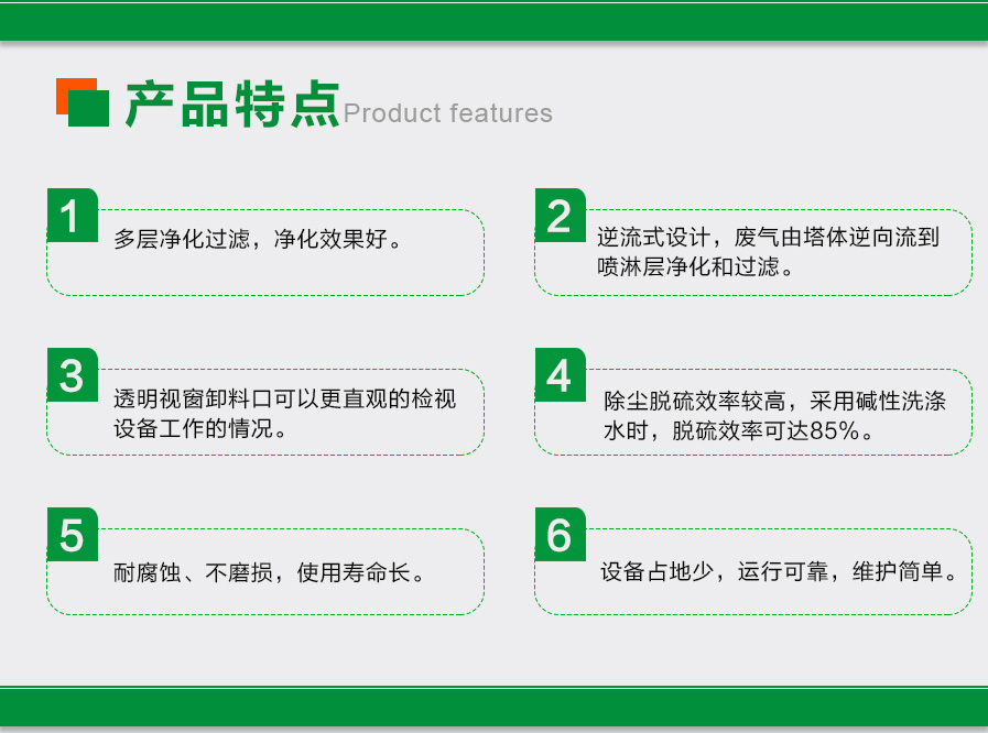 簡介:  噴淋塔(俗稱:水淋塔)是一種處理煙塵廢氣的濕式環(huán)保設(shè)備,可適用于發(fā)電廠燃燒煙塵、鋼鐵廠、鍋爐燃燒、垃圾燃燒等煙塵廢氣處理,這類的煙氣粉塵容易溶于水,噴淋塔是處理這類煙氣粉塵的不二之選。煙氣粉塵從塔底進(jìn)入塔內(nèi),塔內(nèi)有填料支撐板,噴淋塔從塔頂噴出液體,液體均勻的分布在塔內(nèi)和污染物充分接觸,達(dá)到凈化的效果,最后塔頂排出。