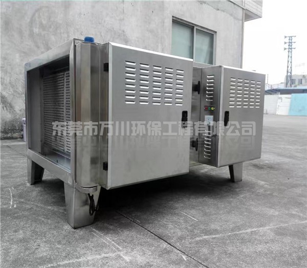 飯?zhí)糜蜔熅哂幸欢ǖ亩拘裕瑴囟雀?、有腐蝕性,長期吸入對人體造成嚴(yán)重的傷害,而且還會對周邊環(huán)境造成污染,要經(jīng)過處理后才可以排放。鑒于對這類污染物的特點(diǎn),我們采用了等離子凈化器去處理,設(shè)備使用耐腐蝕、耐高溫的不銹鋼作為設(shè)備的材料,可以延長設(shè)備的壽命。通風(fēng)管也是采用了耐腐蝕耐高溫的材料制作而成的,通風(fēng)管道中間安裝過濾網(wǎng),可以在油煙進(jìn)去的時(shí)候過大顆粒的污染物。